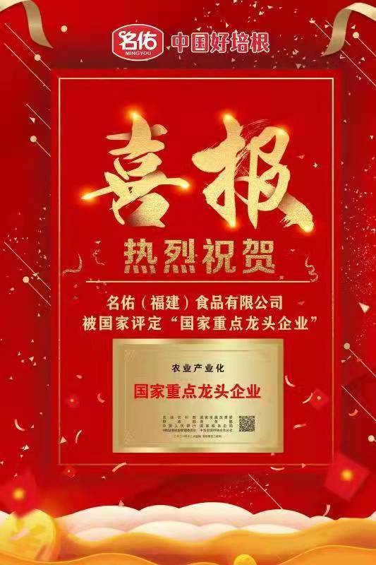 熱烈慶祝我司名佑(福建)食品有限公司經(jīng)各?。▍^(qū)、市)遴選、專(zhuān)家評(píng)審和全國(guó)農(nóng)業(yè)產(chǎn)業(yè)化聯(lián)席會(huì)議審定,獲得農(nóng)業(yè)農(nóng)村部公示第七批農(nóng)業(yè)產(chǎn)業(yè)化國(guó)家重點(diǎn)龍頭企業(yè)。
