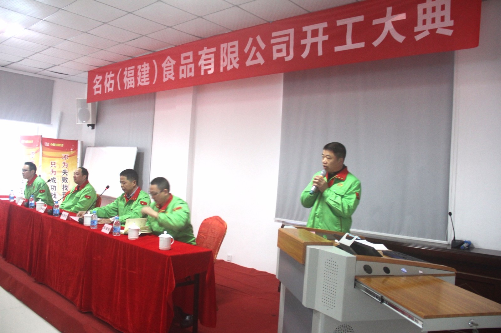 開工大典開始,名佑(福建)食品有限公司各領(lǐng)導(dǎo)人發(fā)表重要講話。回首過去一年名佑全體家人為公司所帶來的貢獻(xiàn)和支持,展望新的一年中公司將要發(fā)展的方向和目標(biāo),攜手同進(jìn),共創(chuàng)名佑美好明天。