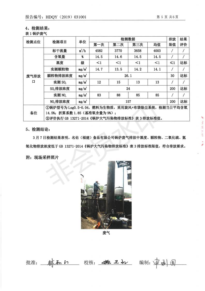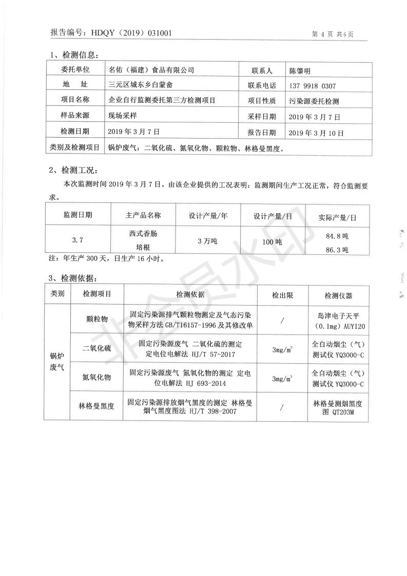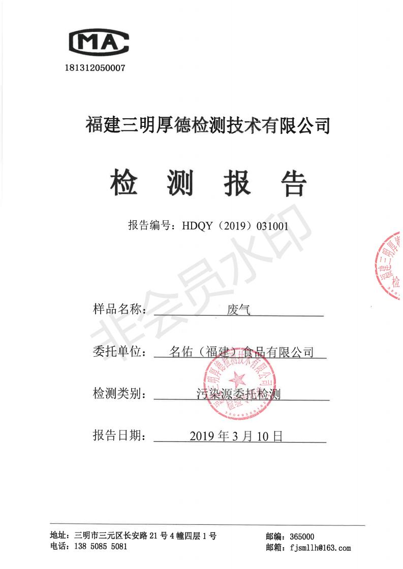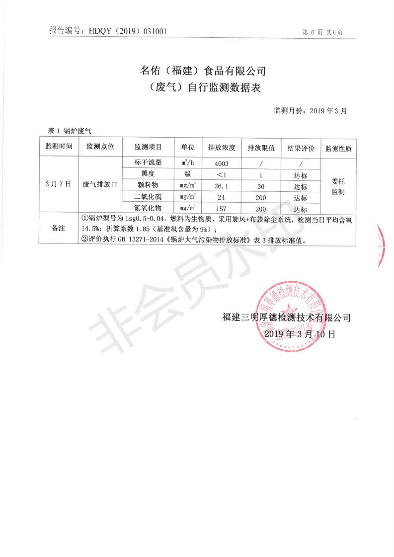 名佑(福建)食品有限公司2019年度3月環(huán)境自行監(jiān)測信息